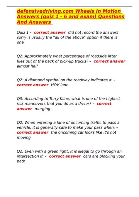 Read I Drive Safely Defensive Driving Quiz Answers Reader